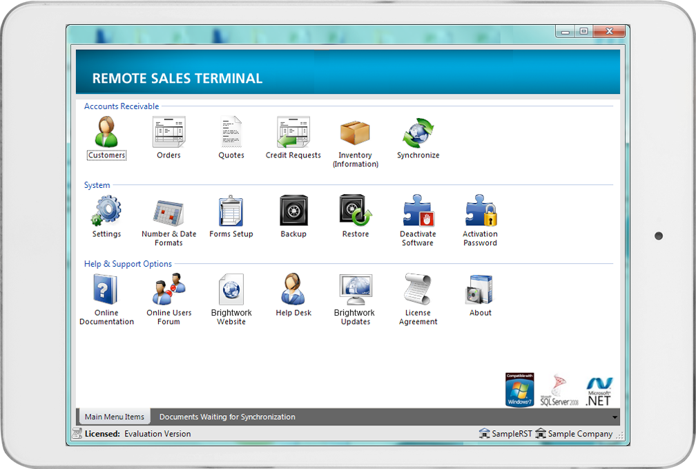 The remote Sales Terminal (RST) module is an independent module that allows employees at Remote Sites, or Sales Reps on the road to be able to Create Customers, capture Sales Quotes and Orders as well as perform Inventory Enquiries on a completely offline basis with the option to Synchronise to the Head Office data.